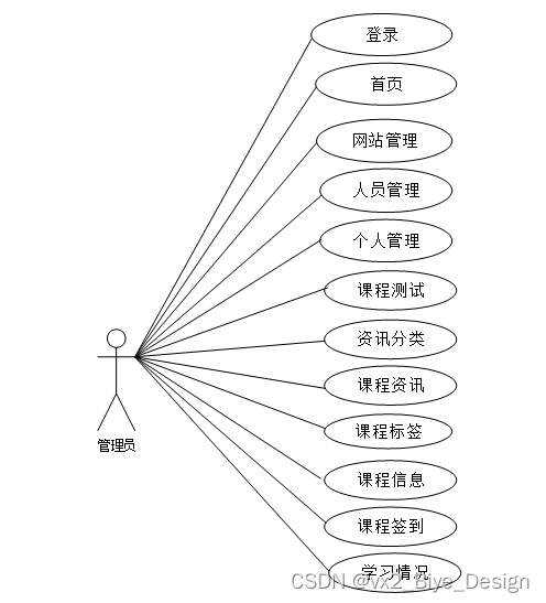 web后台管理上的管理员是维护整个计算机课程教学辅助系统小程序中所有数据信息的。管理员角色用例如图2-4所示。