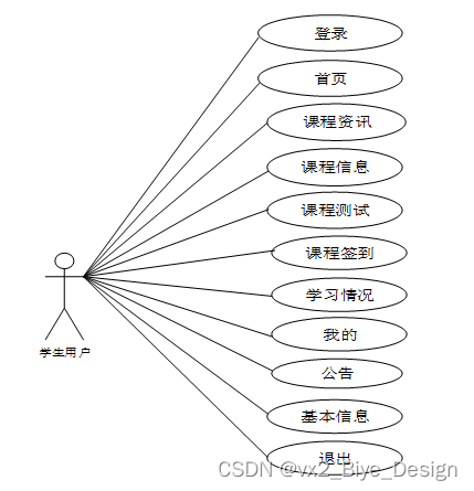 通过2.3功能的分析,得出了本计算机课程教学辅助系统小程序的用例图: