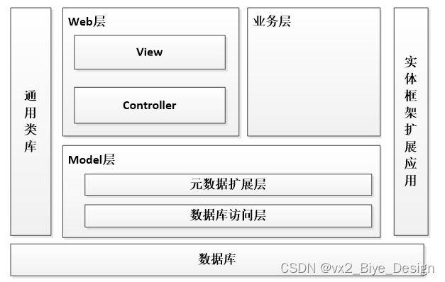 本天气信息可视化分析系统的架构设计主要分为可以3层,主要有Web层,业务层,Model层。其中web层还包括View层和Controller层,Model层包括元数据扩展层和数据访问层。