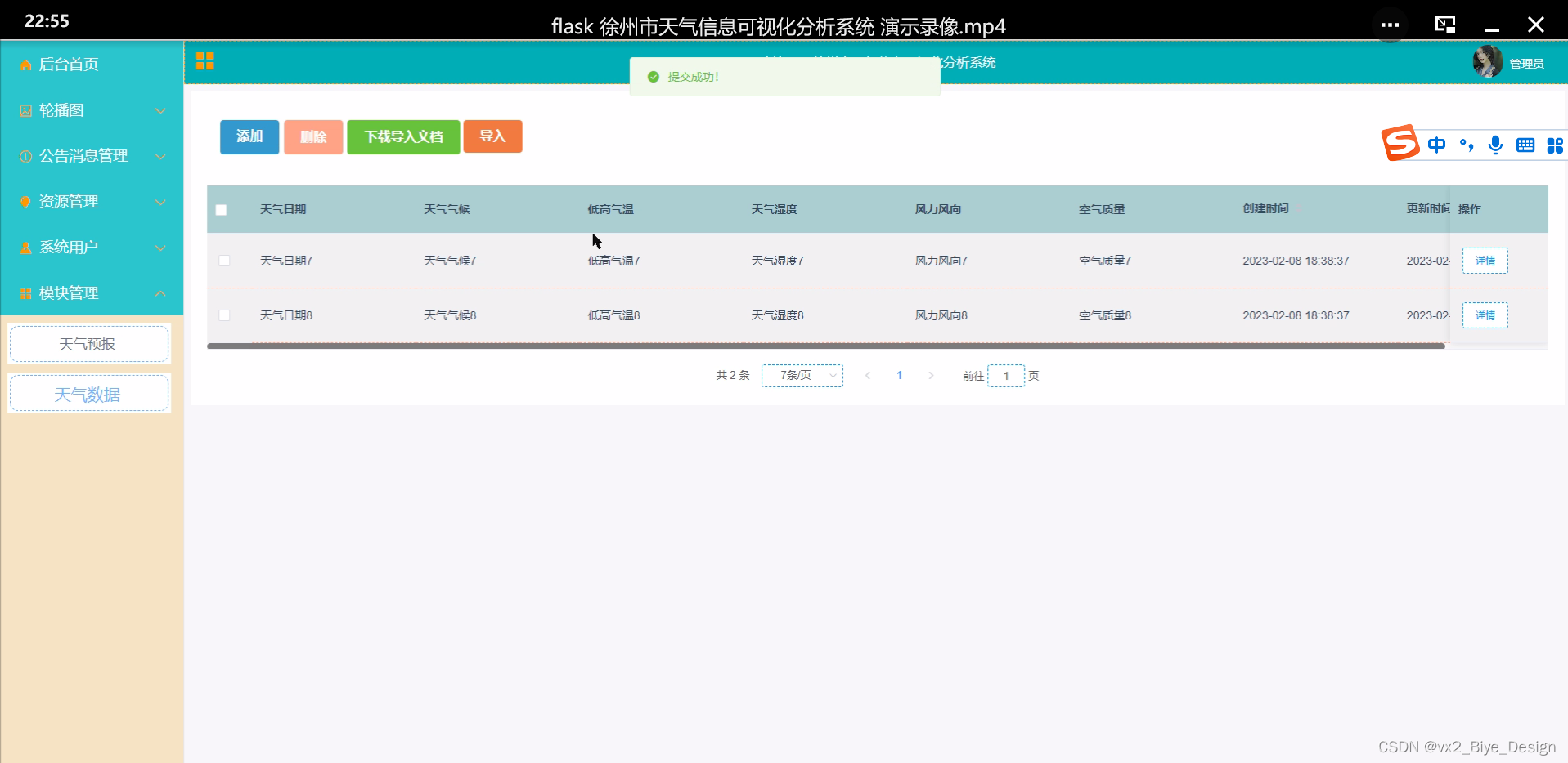 天气数据管理:对天气数据信息进行维护,添加、删除、修改信息。