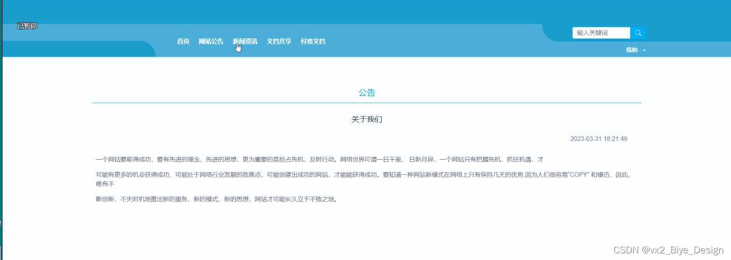 (2)网站公告:在首页导航栏上我们会看到“网站公告”这一菜单,我们点击进入进去以后,会看到所有管理员在后台发布的网站公告;