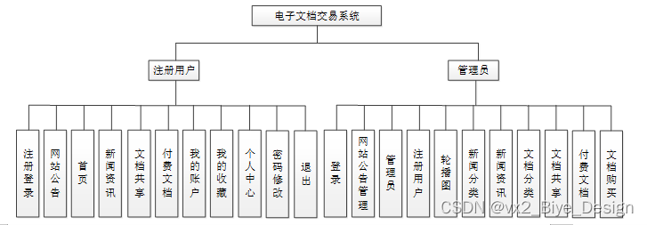 电子文档交易系统从角色上划分为了注册用户以及管理员两种角色。