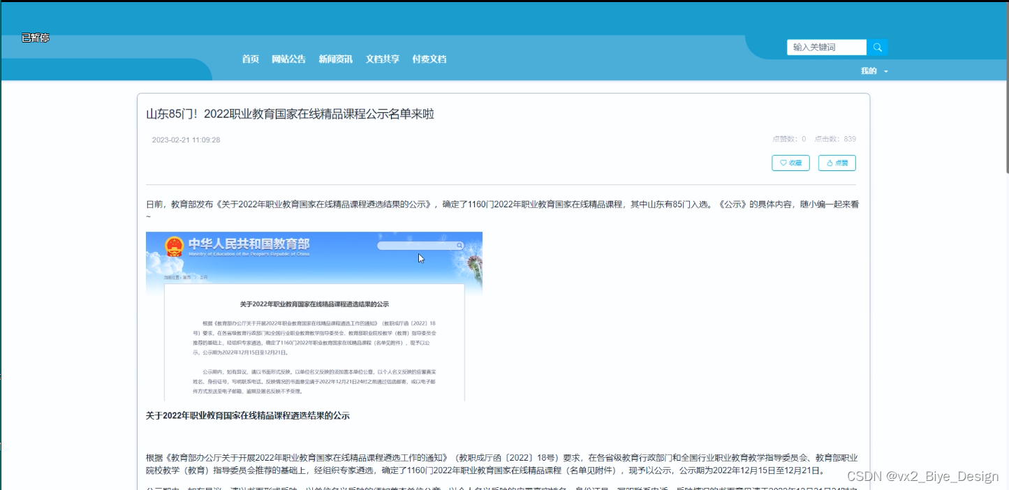 (6)文档共享:用户可以查看文档共享信息支持通过搜索关键词的方式对文档共享进行查询,在查询到自己想要了解的文档共享的时候,可以进入查看详细的介绍。