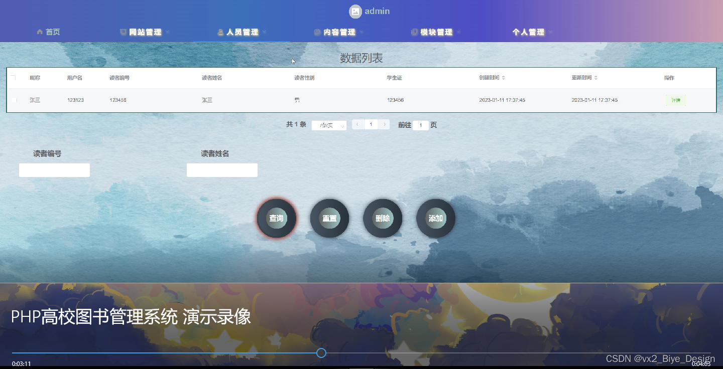 读者用户管理界面如下图所示。