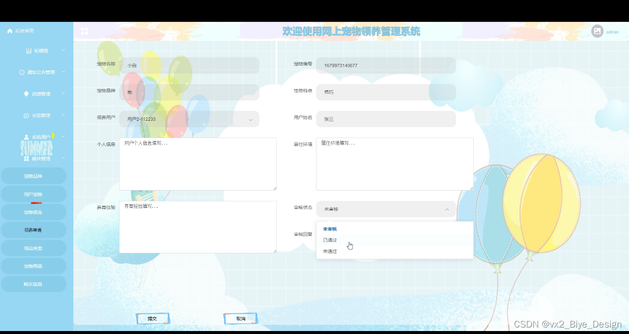 图5-9领养申请管理界面图