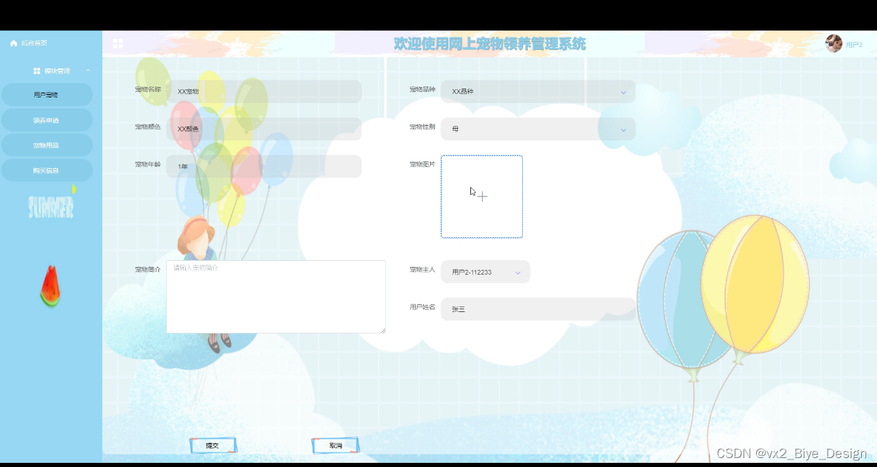 图5-8宠物领养信息添加界面图