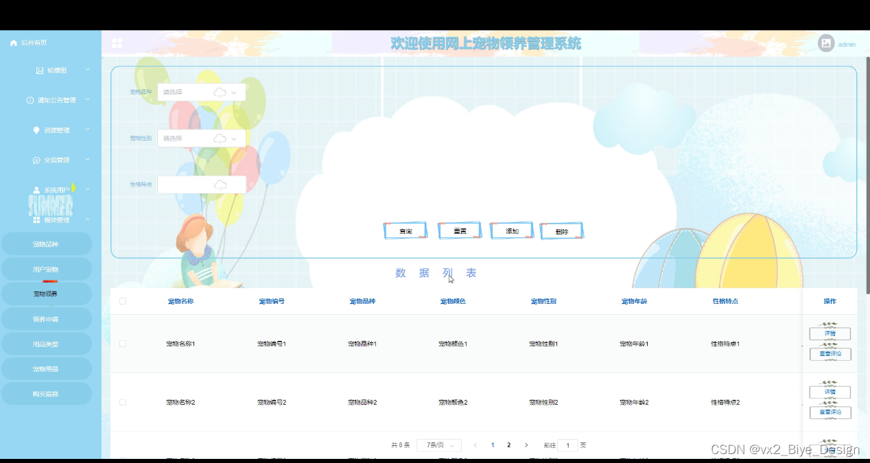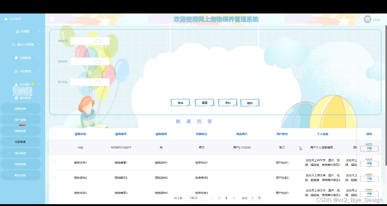 图5-7宠物领养管理界面图