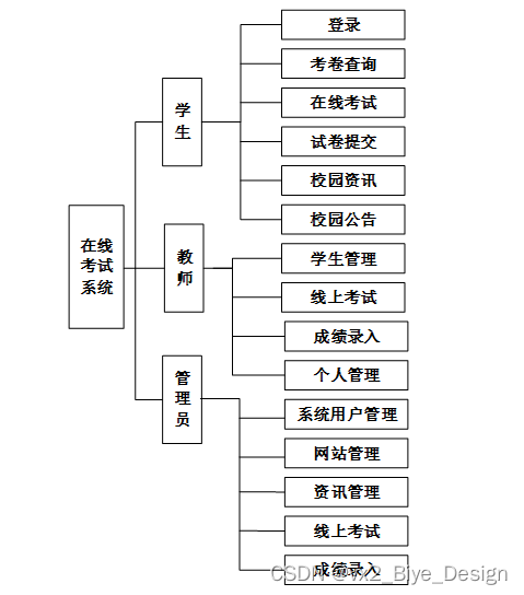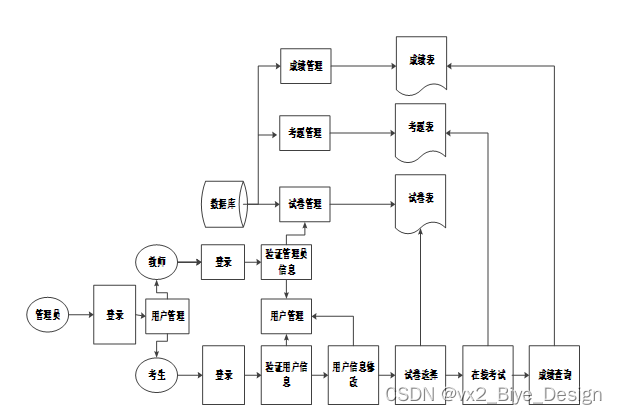 在线考试系统总体分为前台用户模块和后台管理员模块。