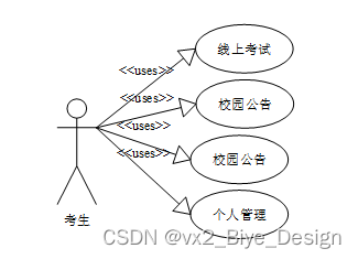 考生登陆系统主要进行两类操作:在线考试,成绩查询与个人信息管理.