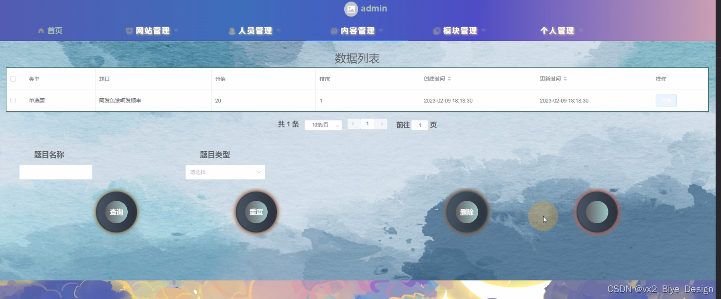 此页面的关键是编写试题信息,单击提交按钮以完成信息的添加。如果未写入完整的试题信息,例如,如果未写入试题编号,系统将给出相应的错误提示,并且无法成功输入。数据以概念的形式以onsubmit =“return checkForm()”的形式写入以进行检查,checkForm()函数是一种用于写入数据的不同类型的校对方法,是不是为空也是经过form表单中的onsubmit=”return checkForm()来检查。