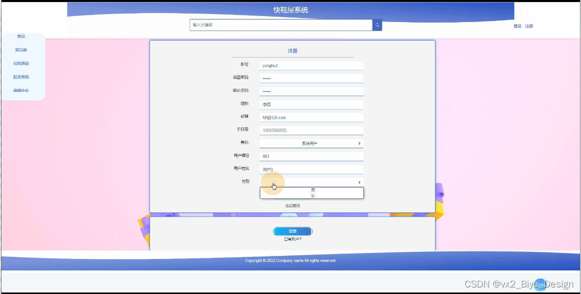 - 用户管理:显示所有注册用户的信息,并进行修改、删除等操作。