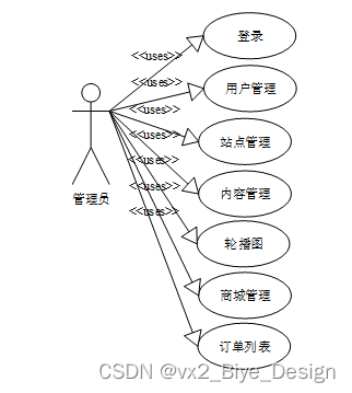 - 管理员:对站点管理(轮播图、公告栏)、用户管理(管理员、系统用户)、内容管理(留言板、留言分类、鞋类资讯、资讯分类)、商城管理(商城中心、分类列表、订单列表)的相关操作