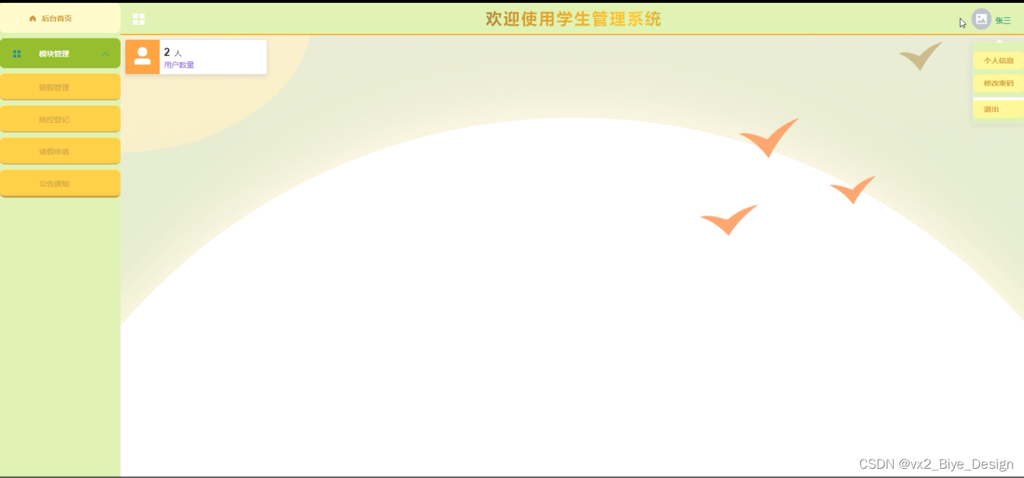 - 个人信息:当用户点击右上角“教师”这个按钮,就会进入到对应的后台进行个人信息的管理了;