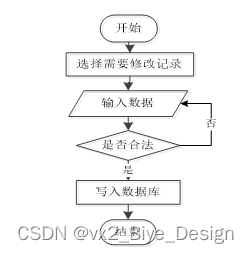 管理员可以对信息等进行的修改,学生也可以对自己权限内的信息进行修改,首先进入修改信息界面,输入修改信息数据,系统进行数据的判断验证,修改信息合法则修改成功,信息更新至数据库,信息不合法则修改失败,重新输入。修改信息流程图如图3-5所示。