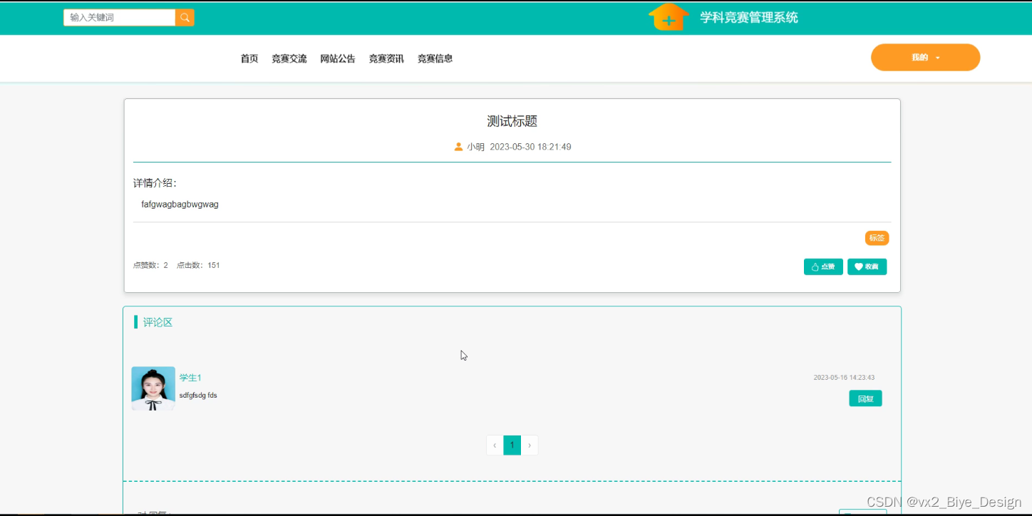 竞赛交流,在竞赛交流页面查看标题、详情介绍、评论区等信息完成竞赛交流,如图5-2所示。