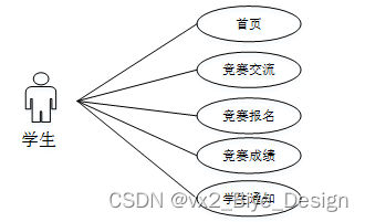学生进入系统可以进行首页、竞赛交流、竞赛报名、竞赛成绩、学生通知等。学生用例如图3-8所示。