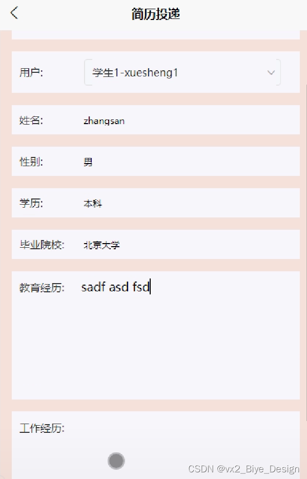 | 功能描述 | 用于用户简历投递 | |