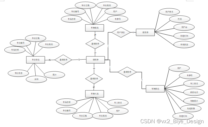 下面是整个车库存取管理系统中主要的数据库表总E-R实体关系图。