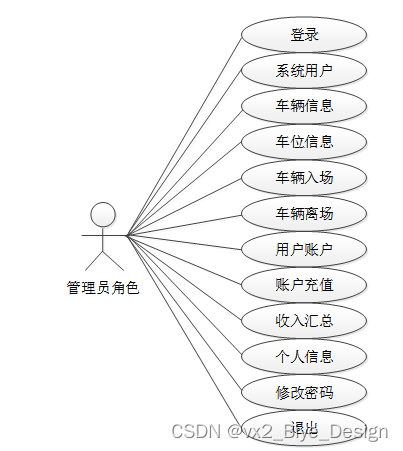 车库存取管理系统中管理员角色用例图如图2.2所示: