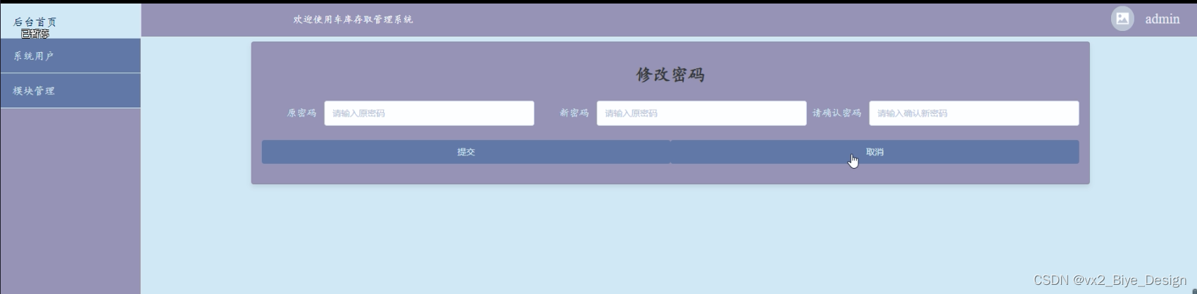 系统管理也都将通过计算机进行整体智能化操作,对于车库存取管理系统所牵扯的管理及数据保存都是非常多的,例如管理员;系统用户(管理员、注册用户)模块管理(车辆信息、车位信息、车辆入场、车辆离场、用户账户、账户充值、收入汇总)等,这给管理者的工作带来了巨大的挑战,面对大量的信息,传统的管理系统,都是通过笔记的方式进行详细信息的统计,后来出现电脑,通过电脑输入软件将纸质的信息统计到电脑上,这种方式比较传统,而且想要统计数据信息比较麻烦,还受时间和空间的影响,所以为此开发了车库存取管理系统;为用户提供了方便管理平台,方便管理员查看及维护,并且可以通过需求进行内容的编辑及维护等;对于用户而言,可以随时进行查询所需信息,管理员可以足不出户就可以获取到系统的数据信息等,而且还能节省用户很多时间,所以开发车库存取管理系统给管理者带来了很大的方便,同时也方便管理员对用户信息进行处理。