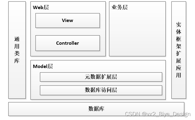 本考试系统的架构设计主要分为可以3层,主要有Web层,业务层,Model层。其中web层还包括View层和Controller层,Model层包括元数据扩展层和数据访问层。