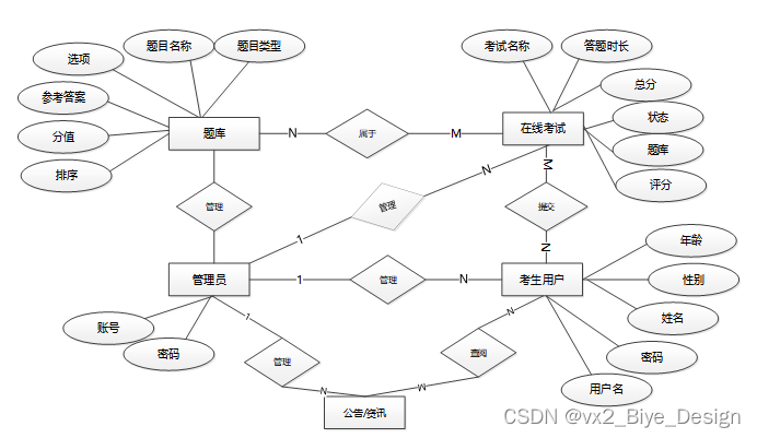 考生用户:用于记录用户的各种信息,包括用户名、密码、基本情况信息等数据项。