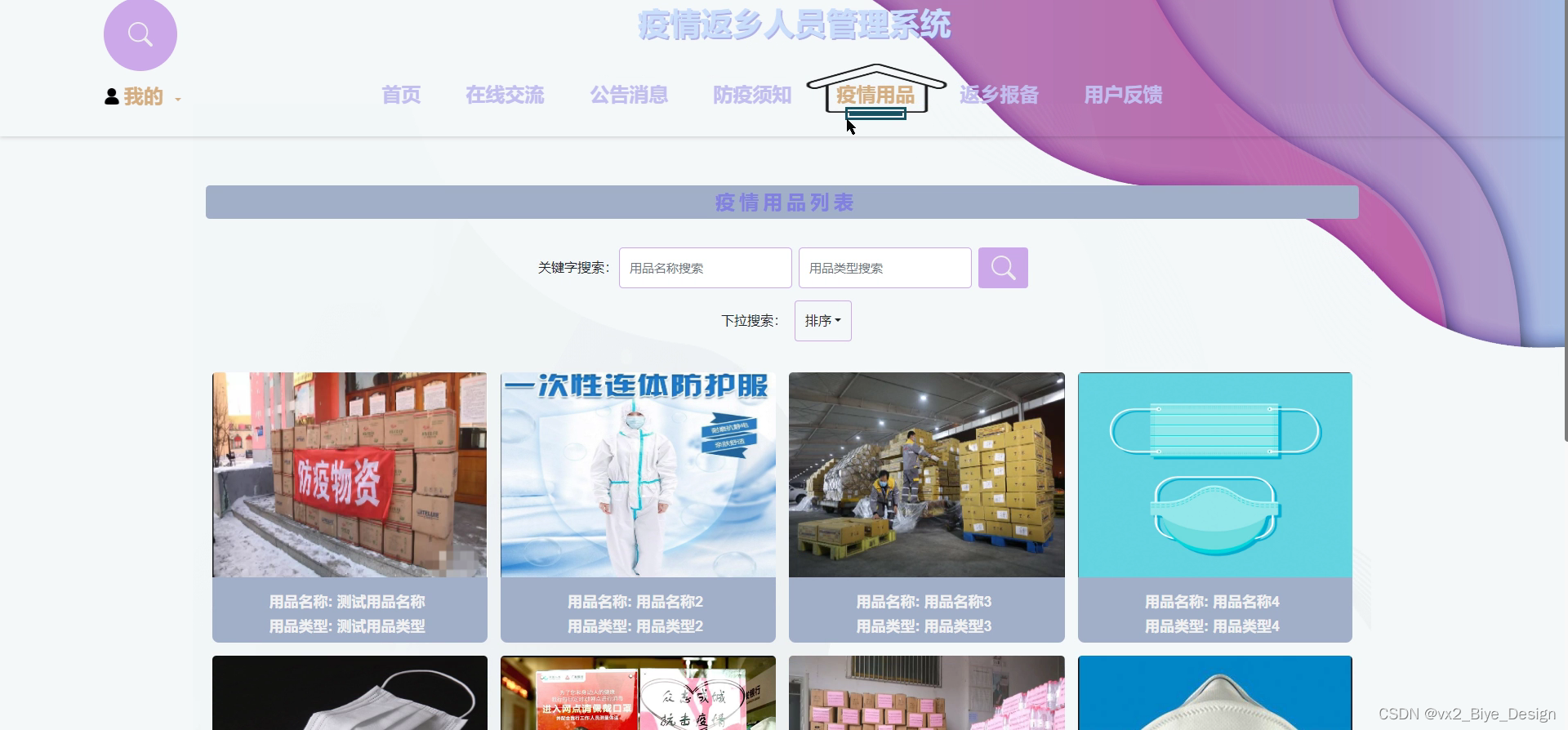 | 4 | 疫情用品管理 | 1.疫情用品列表是否可以生成。 2.验证信息是否准确。 | 通过 |