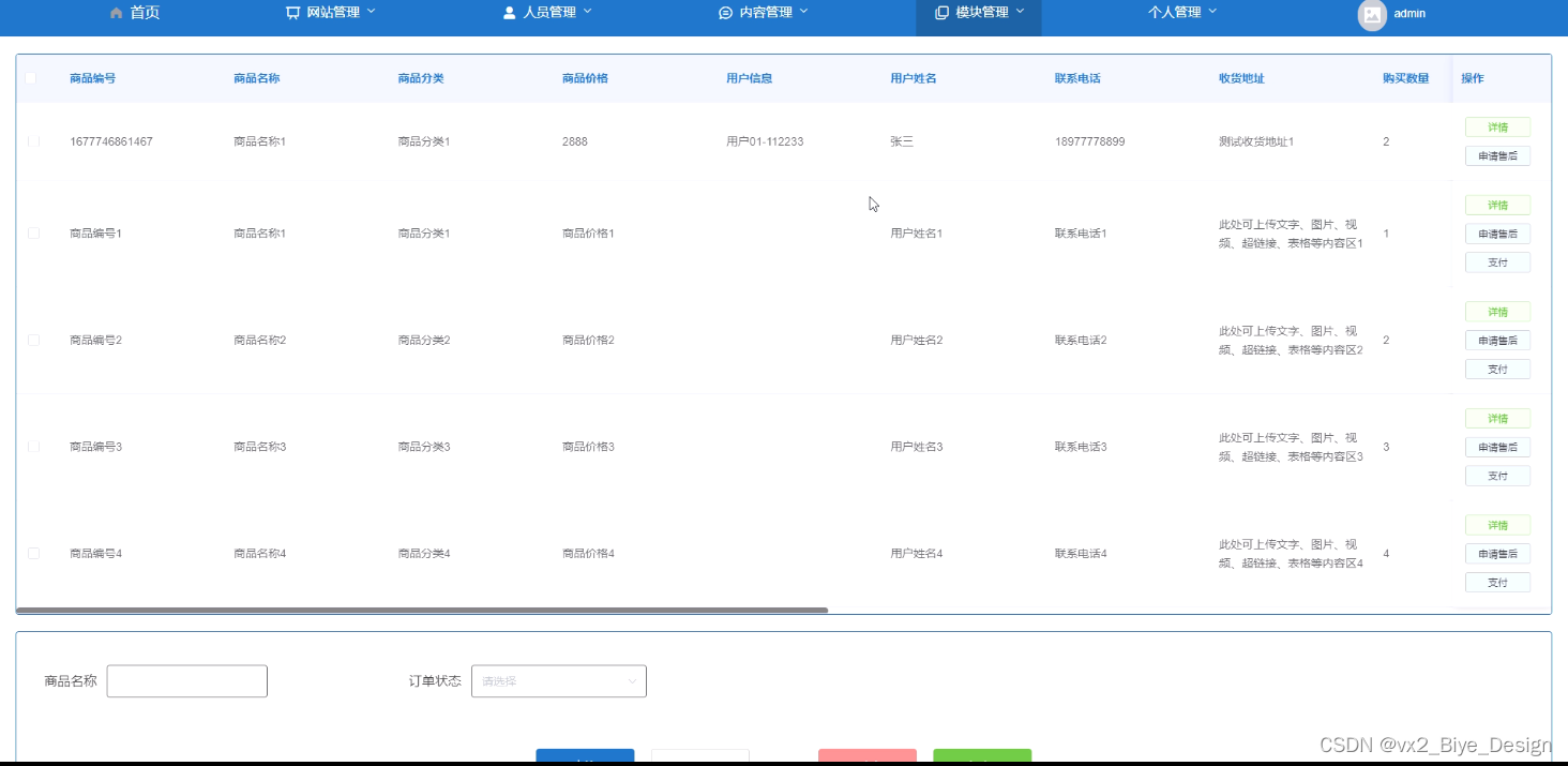 (2)商品管理:主要包括商品列表、商品类目管理、商品添加、商品信息管理等功能。