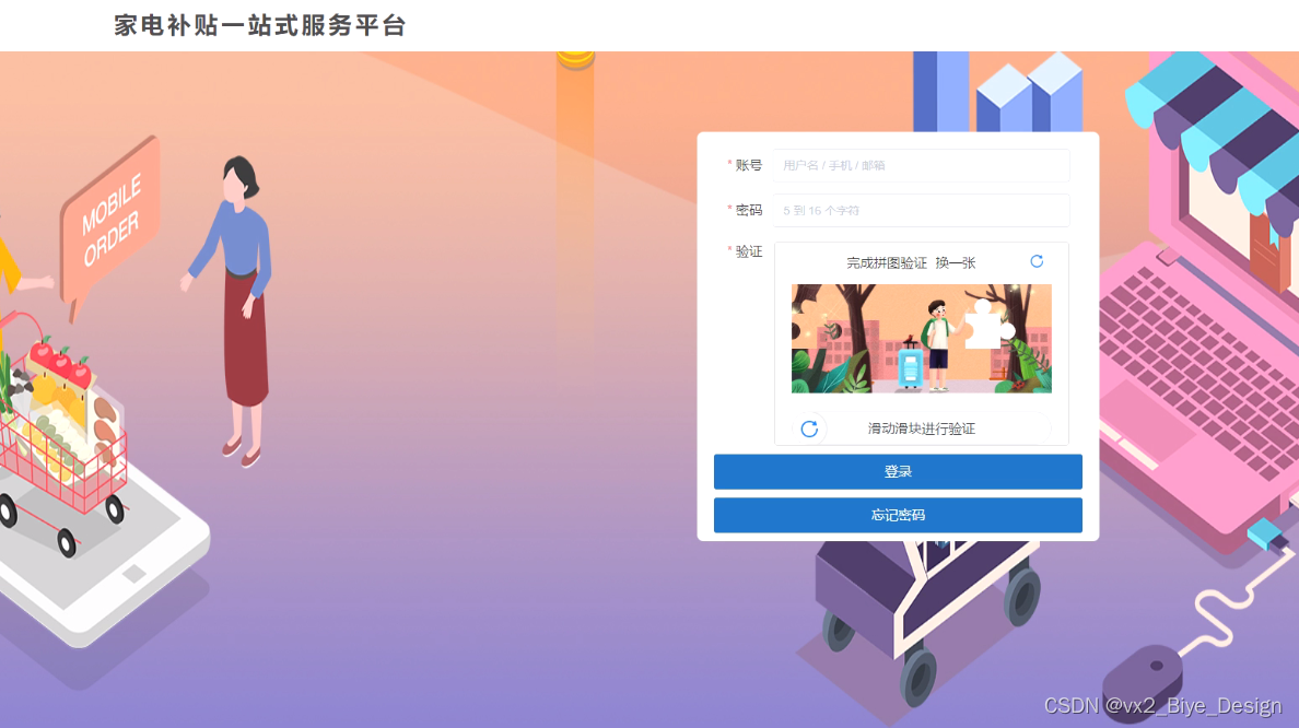 家电补贴一站式服务平台的使用界面简单易于操作,采用常见的界面窗口来登录界面,通过电脑进行访问操作,用户只要平时使用过电脑都能进行访问操作。此系统的开发采用Java技术开发,人性化和完善化是B/S结构开发比较显要的特点使得用户操作相比较其他更加简洁方便。易操作、易管理、交互性好在本系统操作上体现得淋漓尽致。