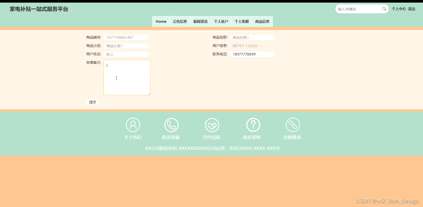 (5)补贴申请模块:主要包括补贴申请等功能。