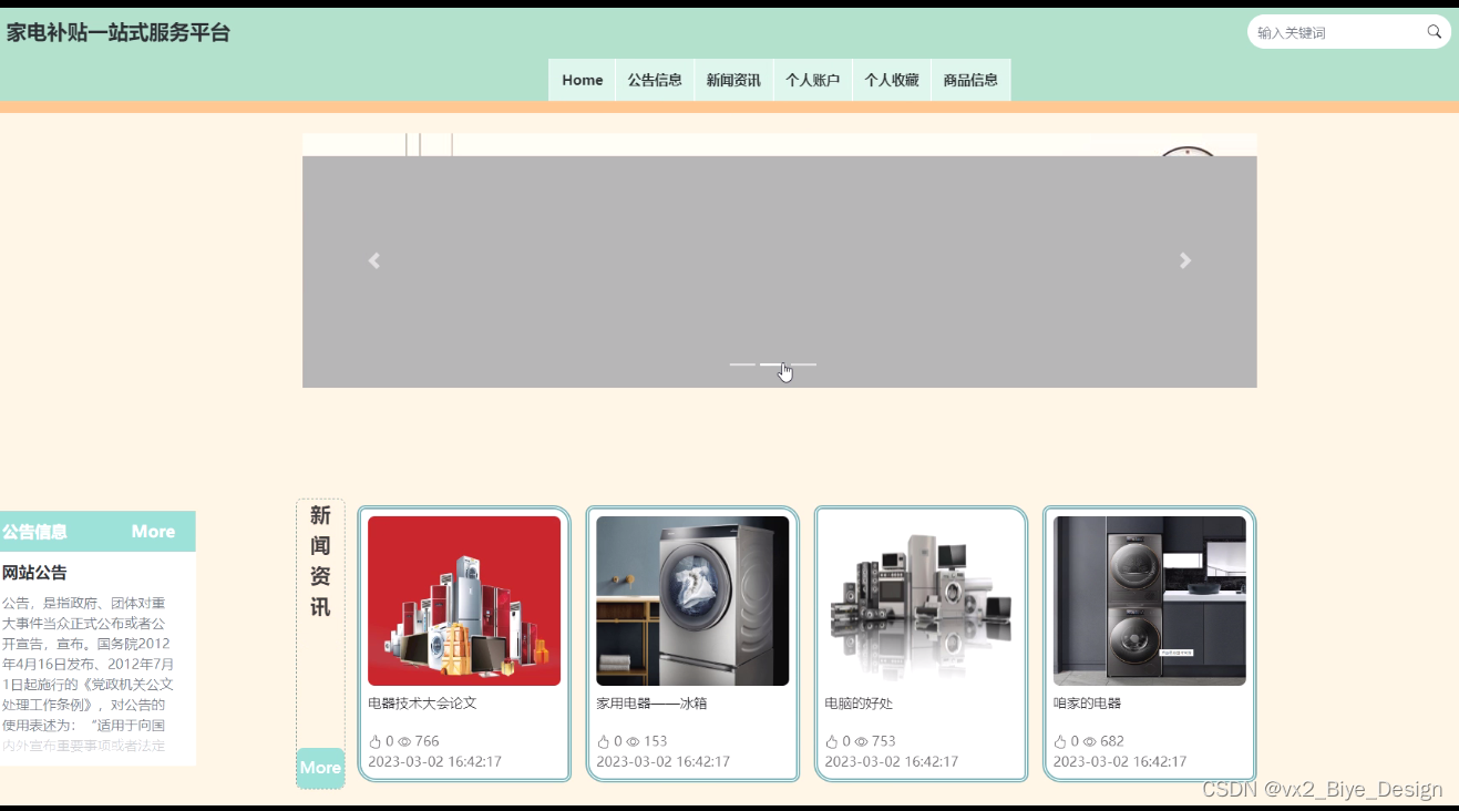 本文针对家电补贴一站式服务平台的特点和用户需求,利用 Java相关技术、JavaWeb 开发技术和MVC 模式等技术,通过详细的需求分析、页面设计和功能设计,最终实现了一个基于 Java 的家电补贴一站式服务平台。