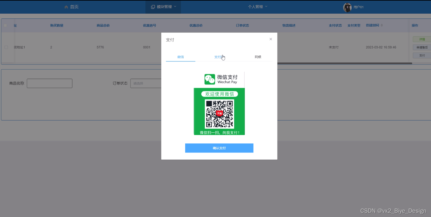 (3)订单管理:主要包括订单确认、支付查看等功能。