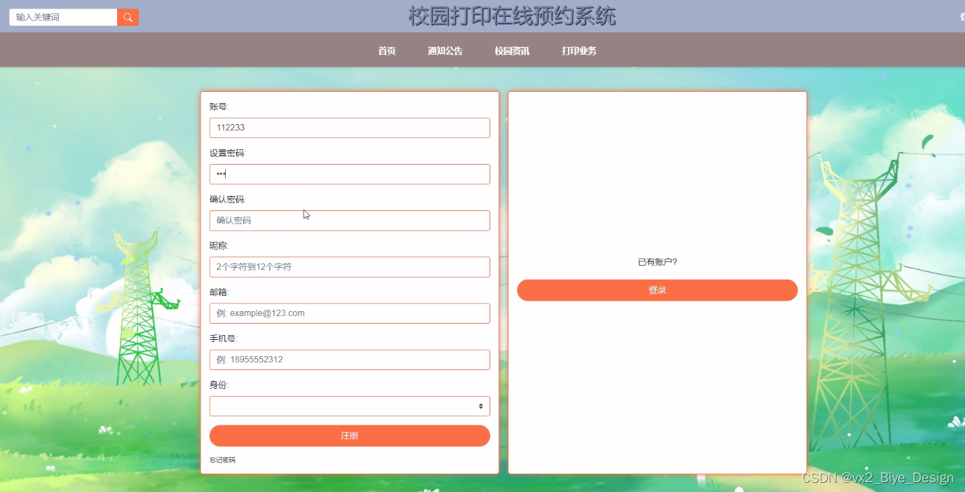 This paper systematically describes the design and implementation of the entire campus printing online reservation system. The main functions implemented include the following: homepage, rotation chart, notification announcement, resource management (campus information, information classification) system user (administrator, ordinary user, business household) module management (printing business, printing order, business notification), and other functions. It has a simple interface, convenient application, and strong interaction, Fully based on the characteristics of the Internet.