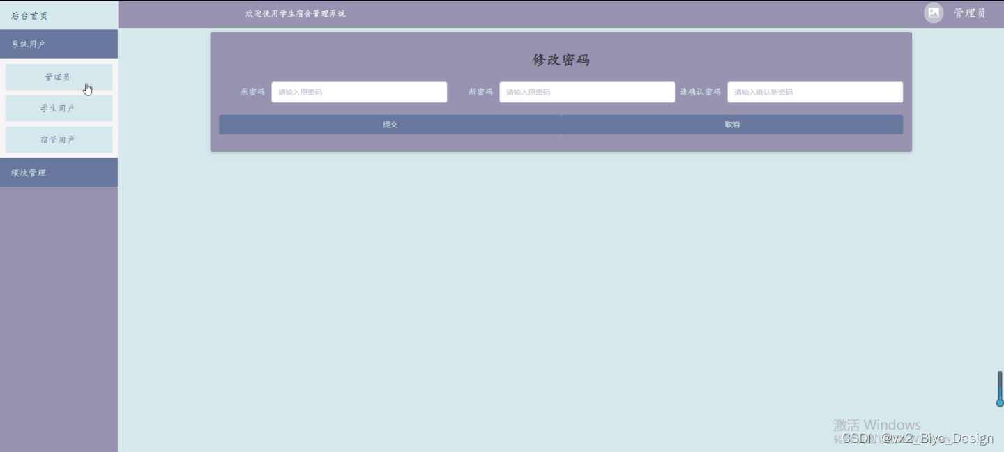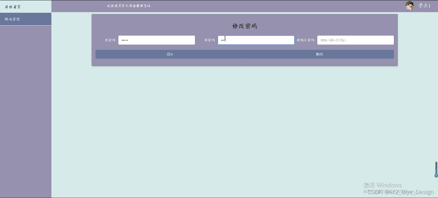 修改密码:在此页面可对自己的密码进行修改操作,如图5-11所示。