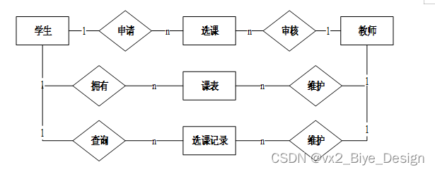 通过高校选课系统的功能进行规划分成几个实体信息,实体信息将通过ER图进行说明,本系统的主要实体图如下: