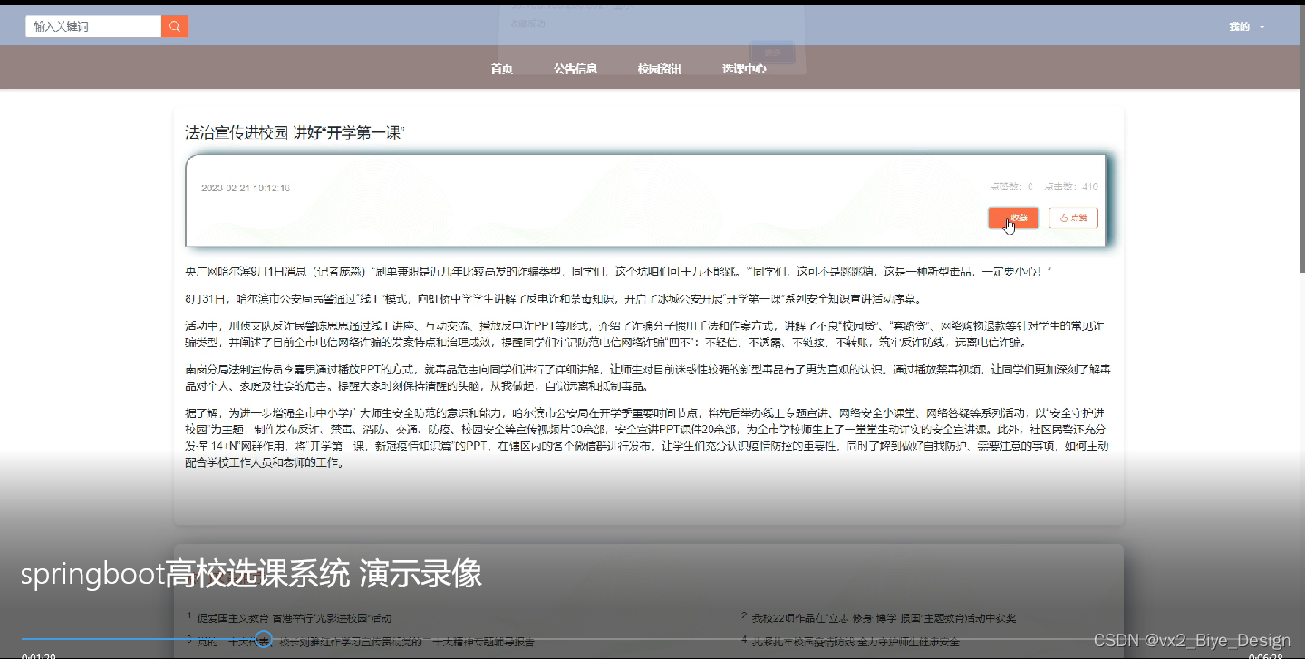 Key words: College course selection system, Java, SpringBoot, MySQL