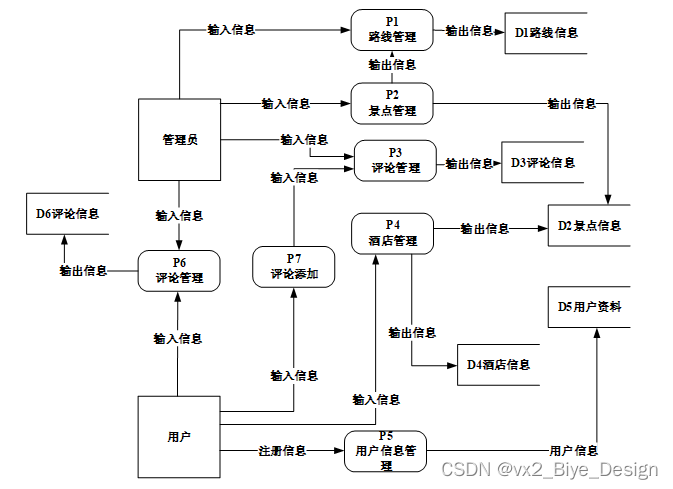 根据系统的业务流程,用户浏览所使用到的数据归纳为输出信息。而用户提交的数据则作为系统的输入数据。相应的,根据系统管理员业务流程,管理员对系统内容的添加、更新和删除等所操作的数据定义为输入信息。