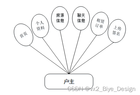 (2)户主,主要功能有:首页、个人资料(个人信息、修改密码)、房源信息、聊天信息、租赁订单、上传签名管理等,如图3-2所示。