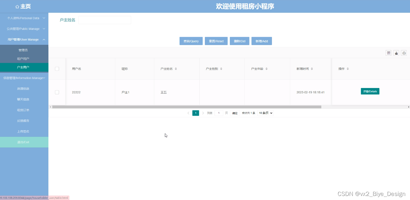 The use of this system can realize the informatization of the management of the rental application, facilitate the administrator to carry out more convenient and quick management, and improve the management efficiency of the rental application.