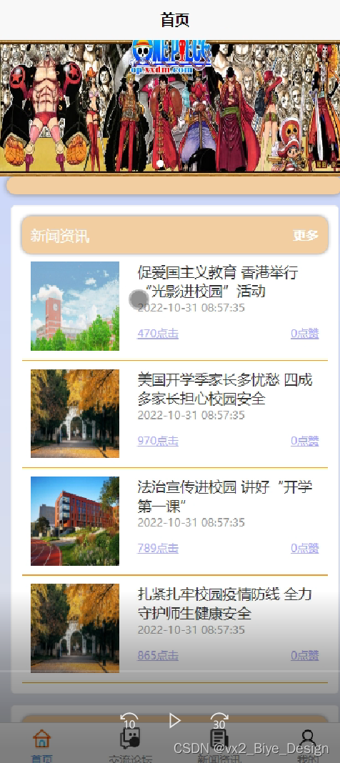 (3)新闻资讯:用户可以查看最新的新闻资讯信息,在查询到自己想要了解的资讯的时候,可以进入查看详细信息,点击“收藏”这一按钮以后会跳转收藏,点击“点赞”以后,对资讯进行点赞,同时支持用户对其进行评论。