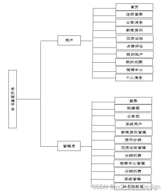 基于Android的手机微博平台我划分为了用户模块,管理员模块这两大部分。