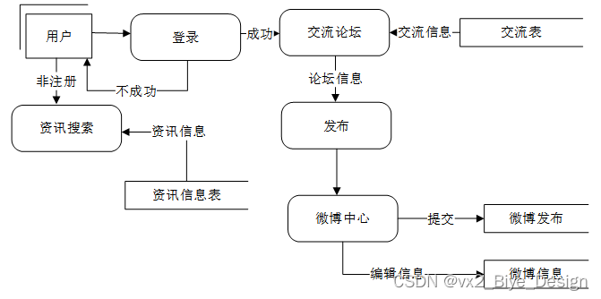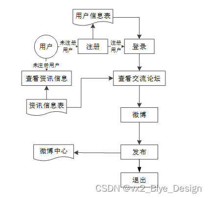 (1)用户注册登录:游客可以随时进入到系统中,对系统中的信息浏览,但是想要实现论坛交流以及微博发布操作,就必须有这个系统的账号,如果没有账号的话,可以注册成员用户进行相关的操作,同时用户还可以通过“我的”这以按钮对个人信息以及操作的信息进行管控。