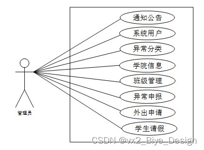 校园健康异常申报系统中管理员角色用例图如图2.2所示: