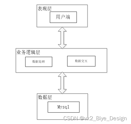 数据层(DL):由于本酒店住宿预定系统的数据是放在服务端的mysql数据库中,因此本属于服务层的部分可以直接整合在业务逻辑层中,所以数据层中只有数据库,其主要完成本酒店住宿预定系统的数据存储和管理功能。