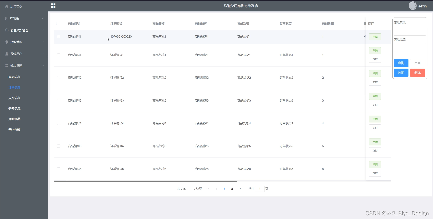 This design mainly implements a pet foster care system that integrates the advantages of humanization, efficiency, and convenience, and completes functional modules such as system user, product information, order information, warehousing information, foster care information, pet feeding, and pet video. The system communicates with the server through a browser to achieve data interaction and change. This system improves work efficiency and reduces errors and omissions in data storage through scientific management methods and convenient services. The pet foster care system is developed using Python language, Flask technology based on the MVVM model, and Eclipse 2017 CI 10 compiler. In terms of data, Microsoft's MySQL relational database is mainly used as the data storage medium, and the development of the system is completed using HTML+CSS technology in the foreground.