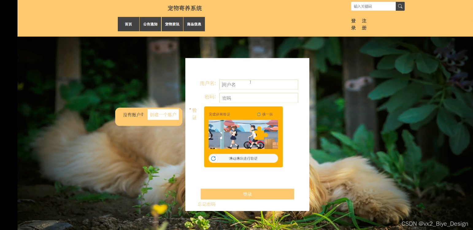 登录:使用宠物寄养系统前是需要用户登录个人账号。