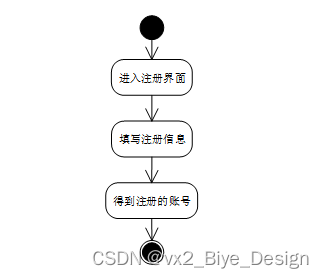 用户管理针对所有用户和管理员。未注册用户点击注册,进入注册页面填写新用户信息,得到自定义生成账号后,注册完成。未注册用户注册的活动图如下图所示。