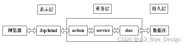 目前B/S体系的系统主要的数据访问方式是:通过浏览器页面用户可以进入系统,系统可以自动对用户向服务器发送的请求进行处理,处理请求是在系统后台中进行的,用户在浏览器页面上进行相应操作,就能够看到服务端传递的处理结果。养老院系统主要分为视图-模型-控制三层架构设计。在视图层中,主要是操作在服务器端向客户端反馈并显示的数据,在模型层中,主要处理相关的业务逻辑、数据整合等,最后的控制层它介于视图和模型之间,主要是调整两层之间的关系,最终落实数据的传递。