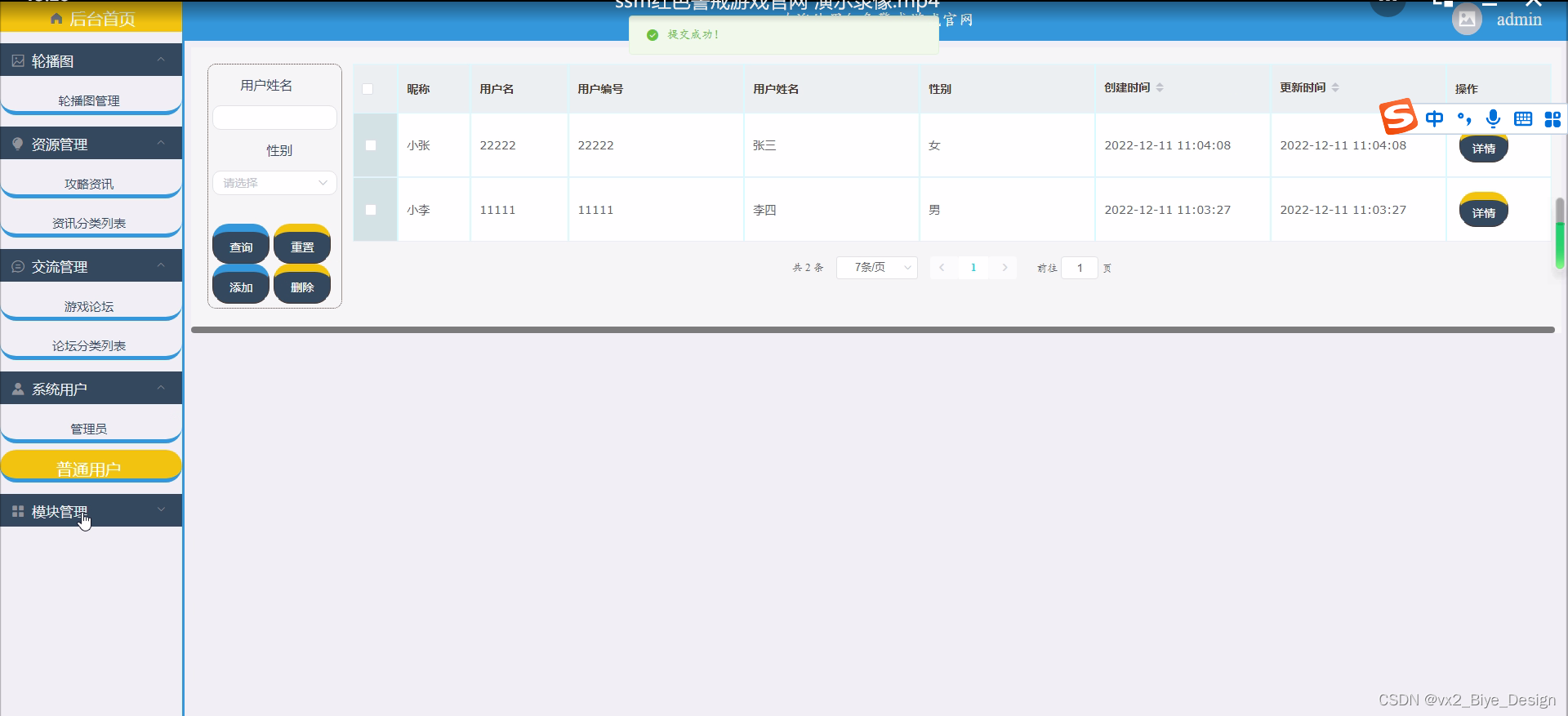 (1)功能要求:可以管理首页、轮播图、资源管理(攻略资讯、资讯分类列表)交流管理(游戏论坛、论坛分类列表)系统用户(管理员、普通用户)模块管理(上传视频、视频中心、设备中心、电竞小说、上架设备、上架小说、设备订单、小说订单)等功能模块。