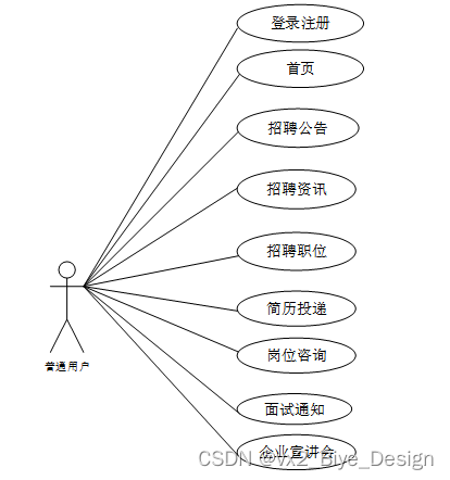 按照网上招聘系统的角色,我划分为了管理员以及普通用户和企业用户这三大部分。